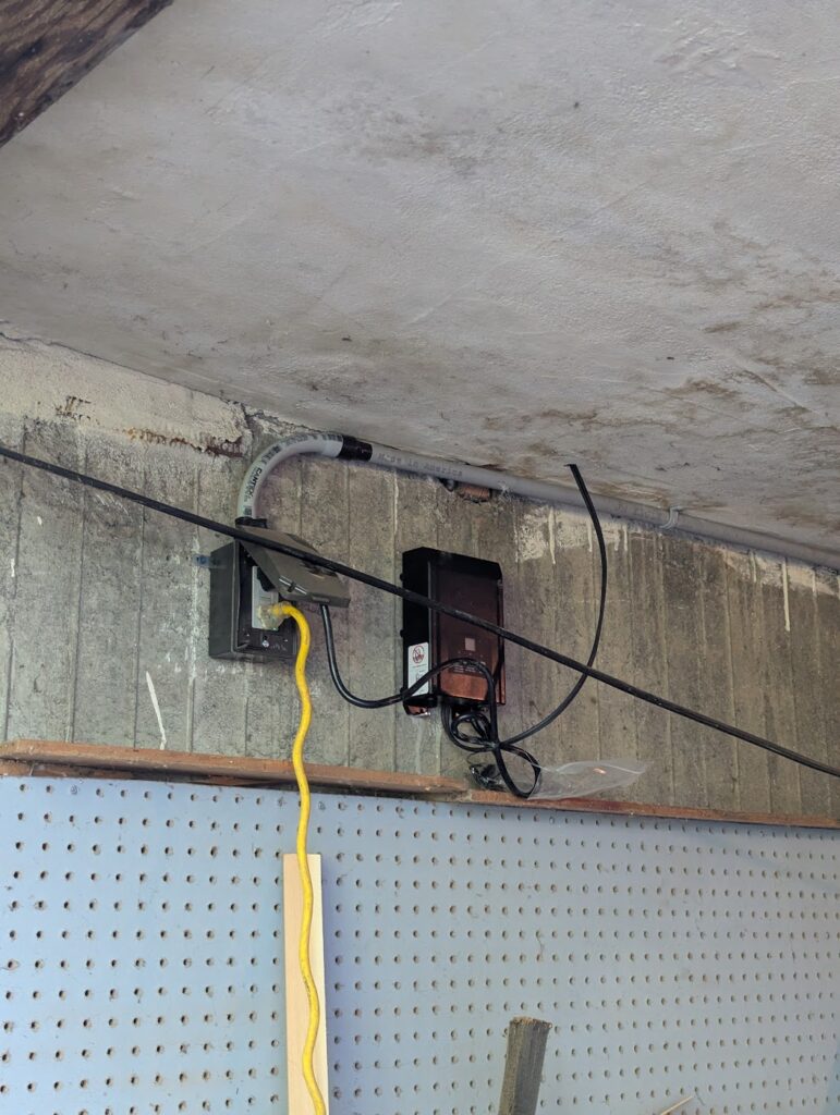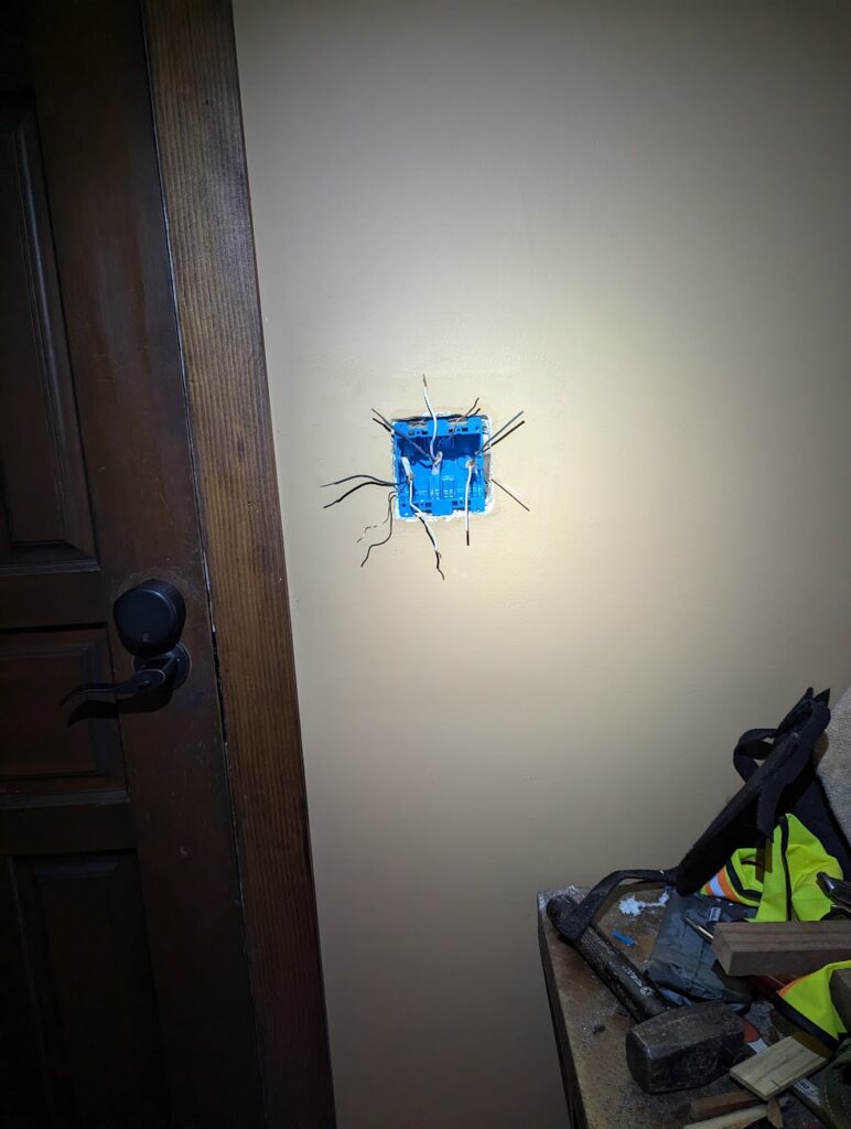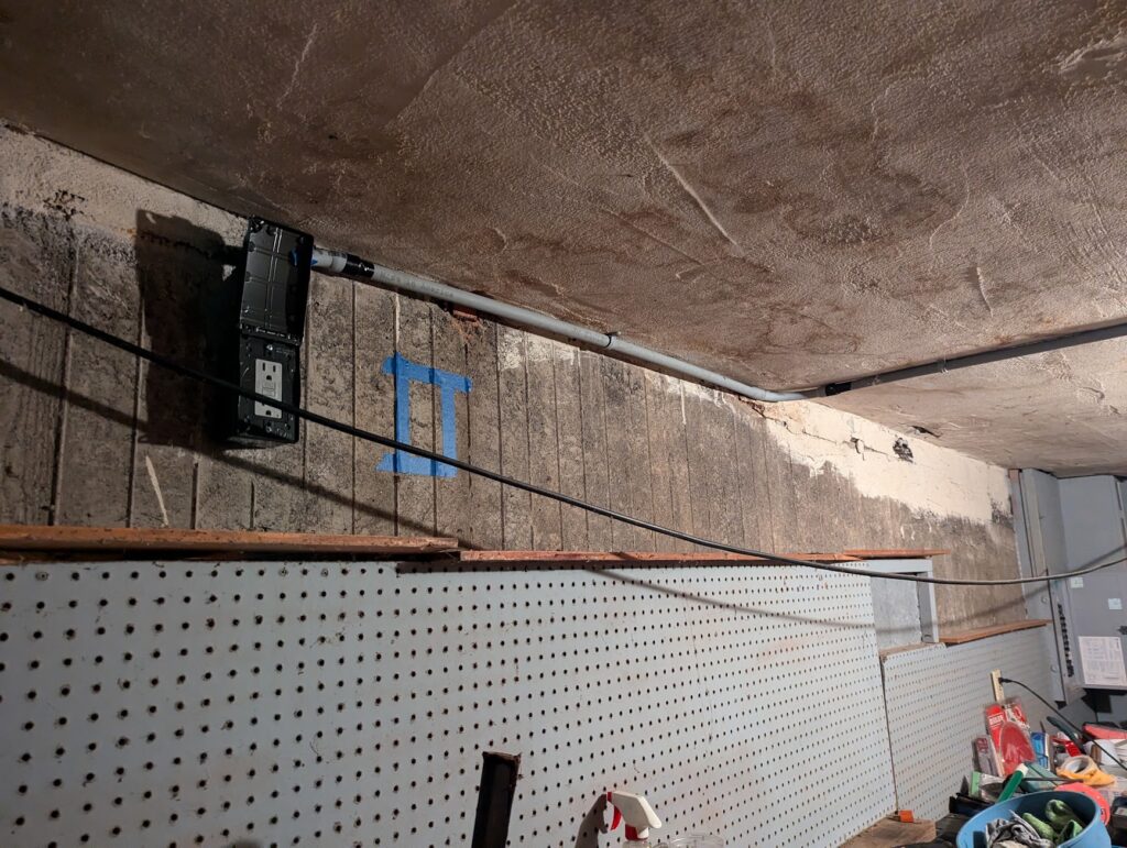 Next up was the stair lighting. Did I mention these stairs were getting lighting. Because these kinds of exterior lights are almost exclusively low voltage nowadays, they need to run into a converter that is then plugged into a standard outlet. But I wanted the lights to operate off of a light switch next to the one that operates the porch light, so I wired a new switch that operates an outlet in my garage that the converter would be mounted next to. As an added bonus, there is now and extra outlet in the garage that operates off of the switch, so you can plug your Christmas lights into it and have them turn off and on from the switch. Pretty nifty! I don’t even care about Christmas lights, but if it’s going to be that easy, might as well.